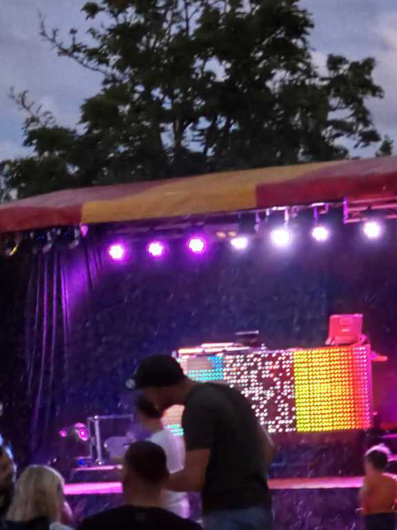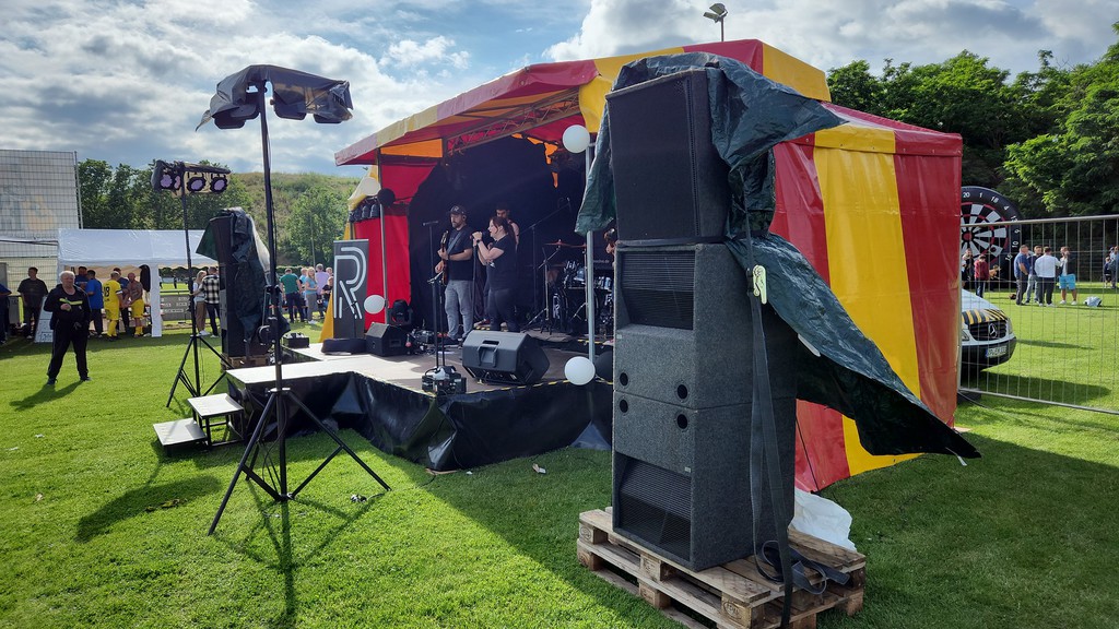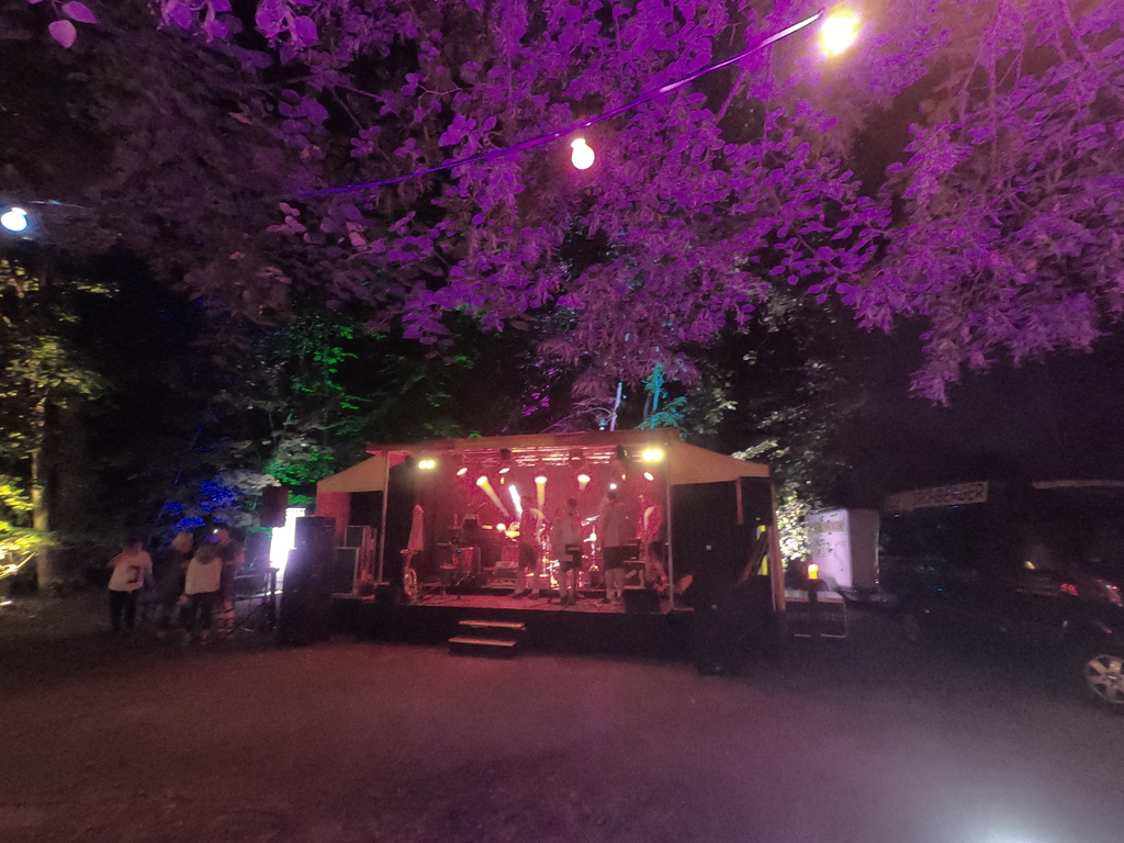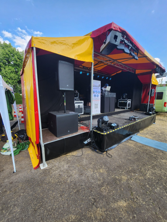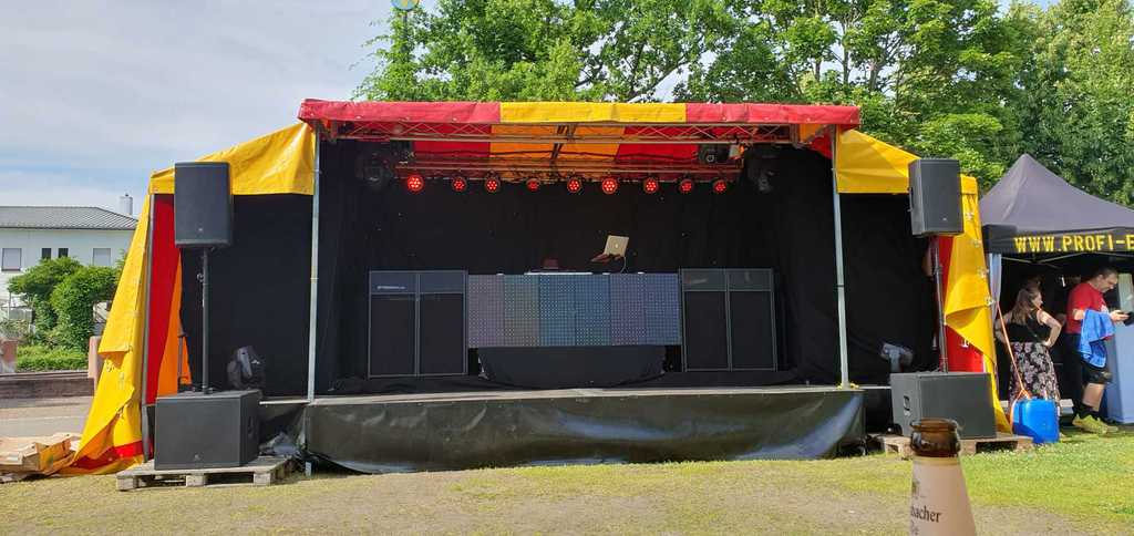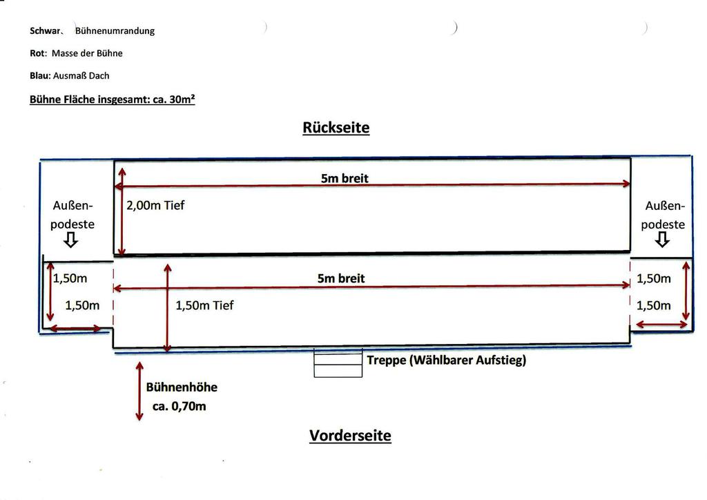 Die Bühne Ist mit den Podesten 2m Verlängert worden. Nach Vorne
